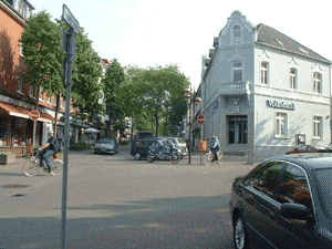 ![]() Nein , so alt ist das Bild gar nicht! Es muss in den 50er Jahren gemacht worden sein. Aber, wie ihr seht gibt es noch keinen Marktplatz. Dort stand noch ein altes Bauernhaus. Auch die Oberhausener Straße existierte noch nicht. Vorne rechts seht ihr einen unbebauten Platz. Der ehemalige Kirmesplatz. Recht wild muss es dort zu gegangen sein. Das erzählen zumindest viele Leute, die damals dabei waren. |