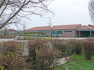 Die neue Schule in der Hühnerheide. | Alles neu. Aber hier hätte man mehr machen können. |