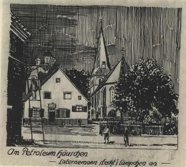 ![]() Heutige Mittelfeldstrasse. Links von der Bildmitte das "Petroleumhaus" |