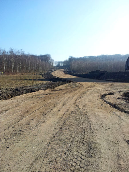 weit. Blick vom Zechengelände. Oben kann man schon die ersten Häuser von Oberlohberg sehen. Durch die neue Straße ist es bis dorthin nur noch ein Katzensprung. |